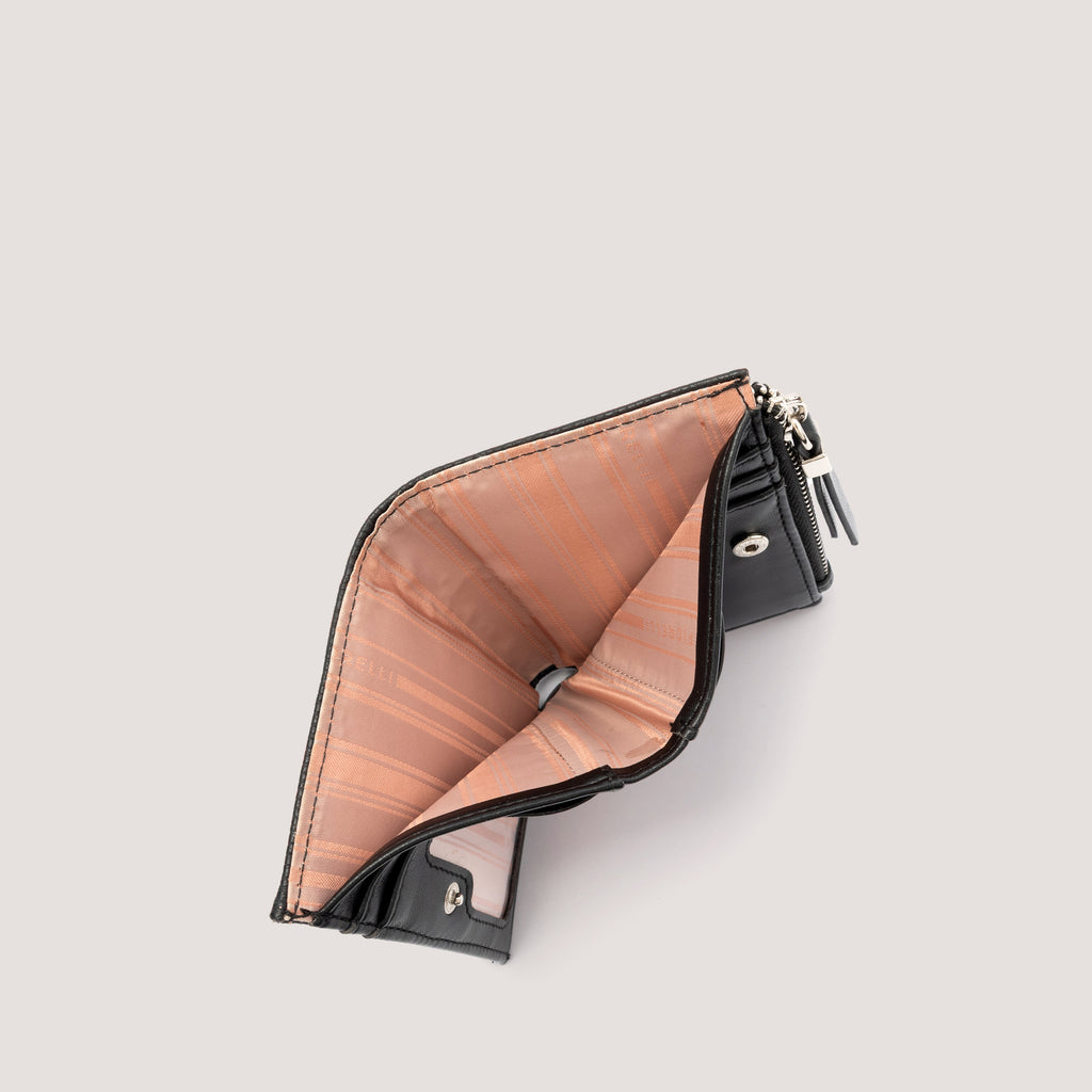 Bi-fold wallet with popper closure
