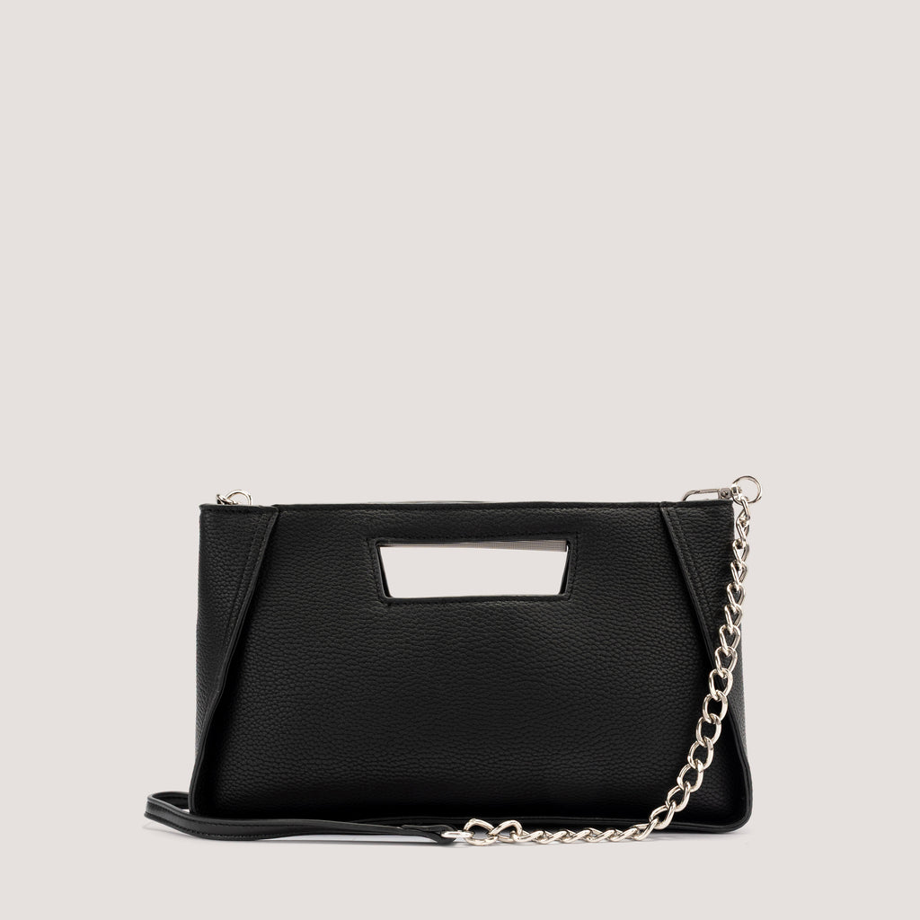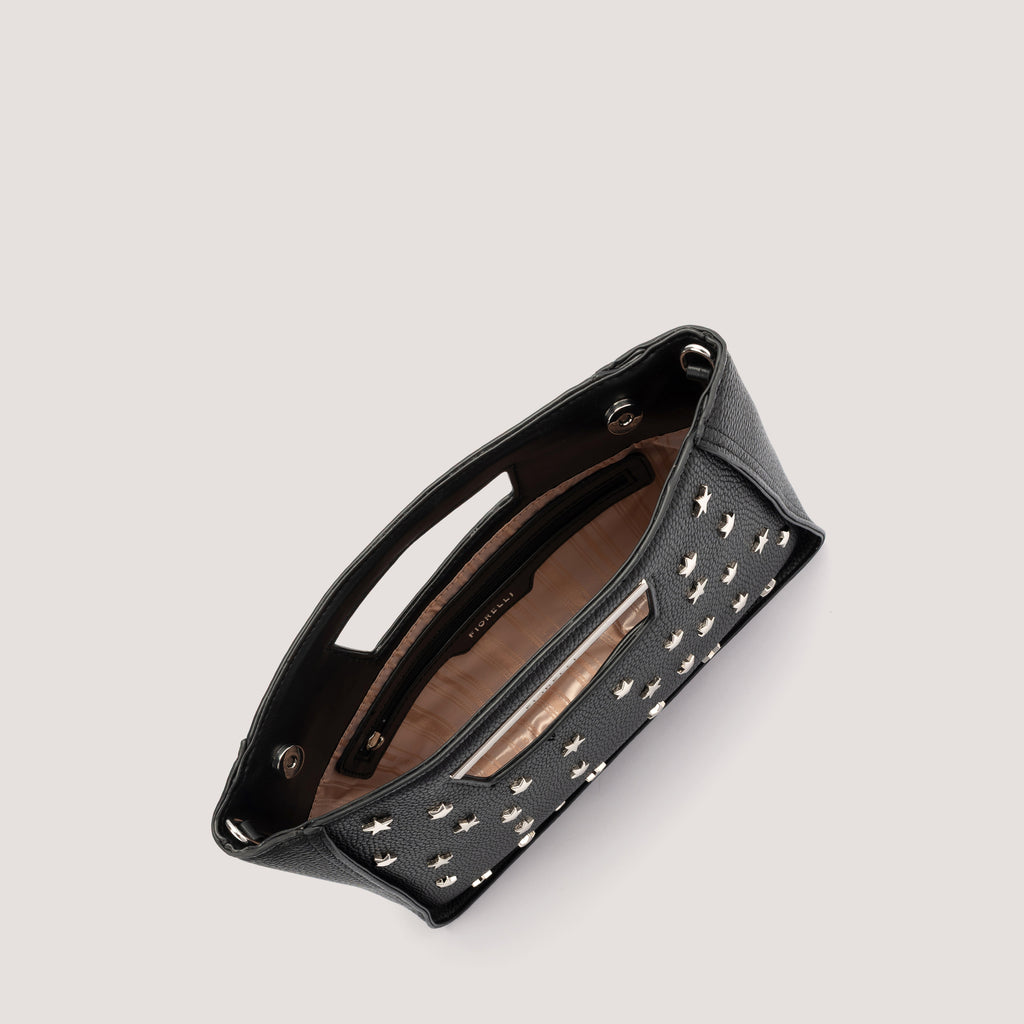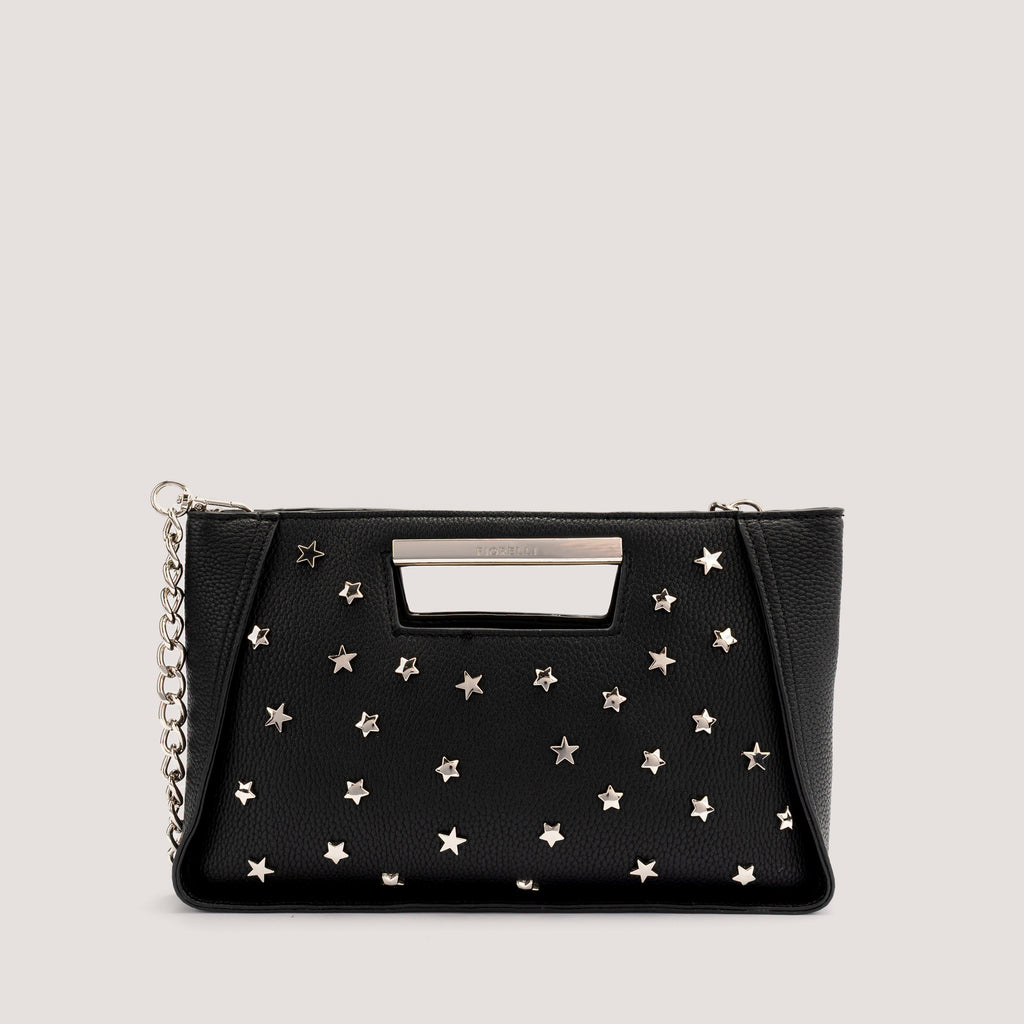 Sleek, structured and designed to stand out, the Lola Hard Handle Clutch brings modern edge to any evening look. Crafted from faux leather in silver or star studded black with a sculptural grab handle for effortless elegance. The double magdot closure opens to a compact interior, sized to hold your night-out essentials, with internal slip and zip pockets to keep them organised. Wear it in hand or use the detachable crossbody strap when you want to go hands-free.