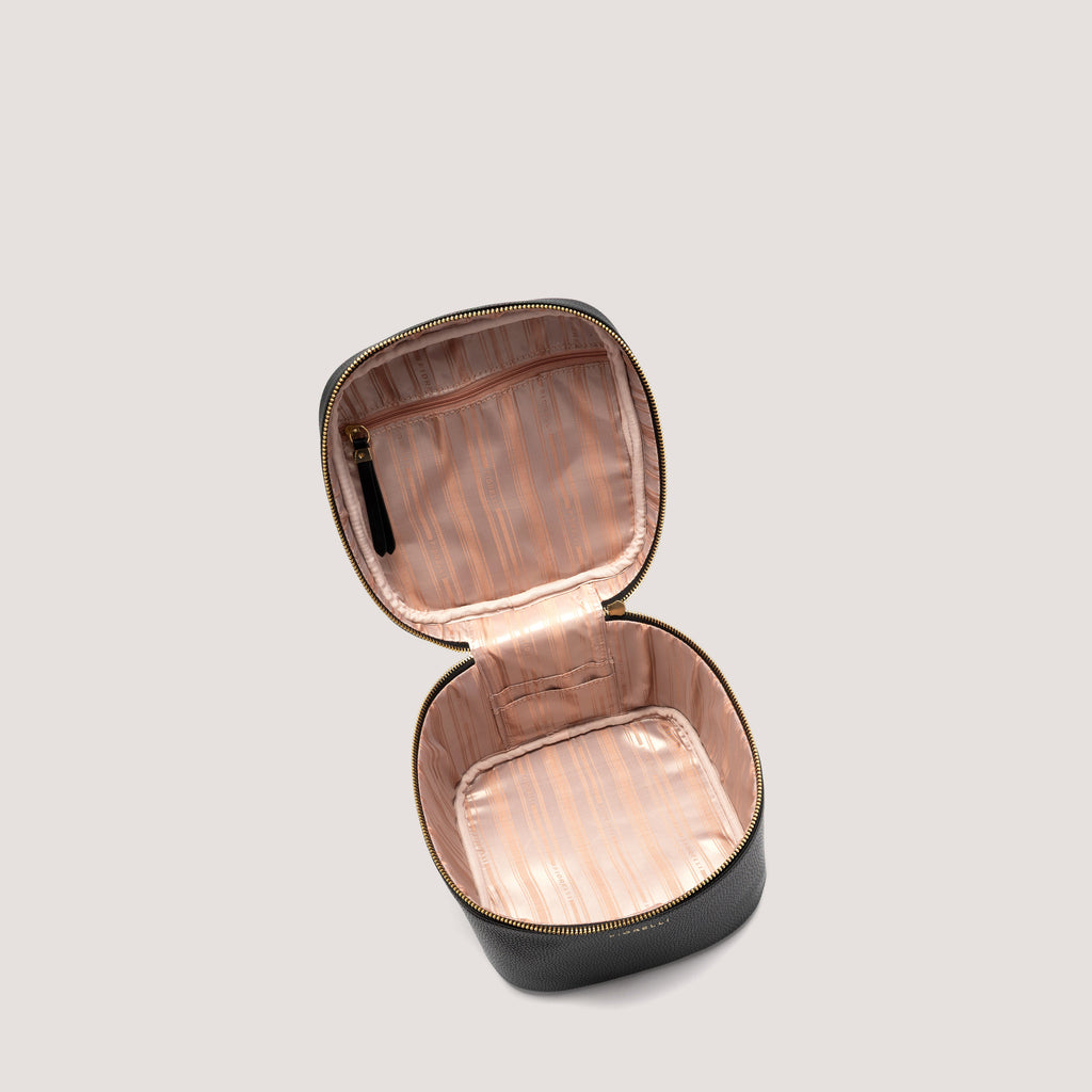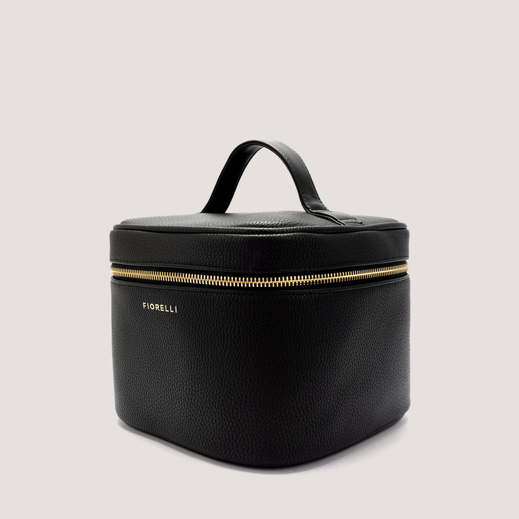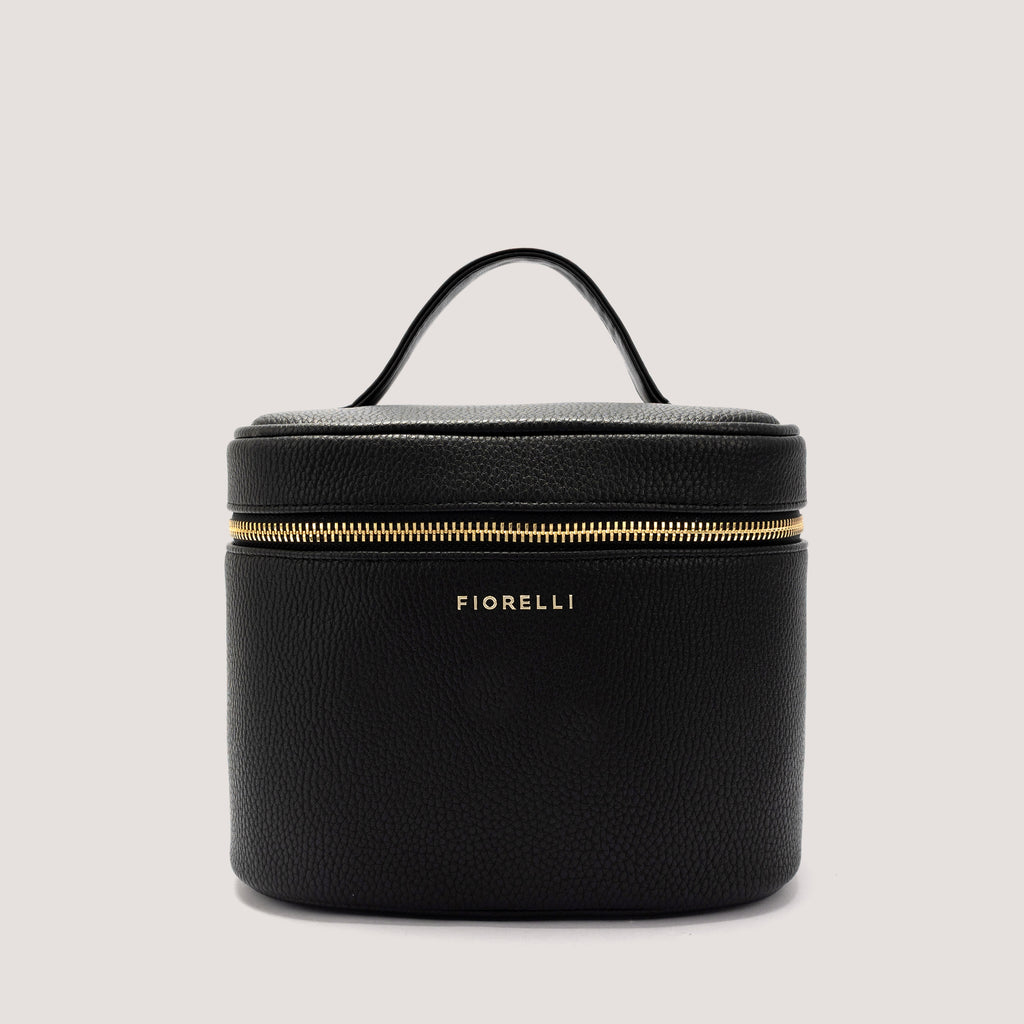 Simple, sleek and endlessly versatile—the SADIE Large Cosmetic Case in black is crafted from smooth faux leather and finished with Fiorelli branded hardware. Designed to hold your beauty essentials with ease, it features a grab handle and a spacious, fully lined compartment with handy interior pockets. Perfect for everyday elegance, it transitions seamlessly from your morning routine to evening plans, keeping your treasures safe and close at hand.