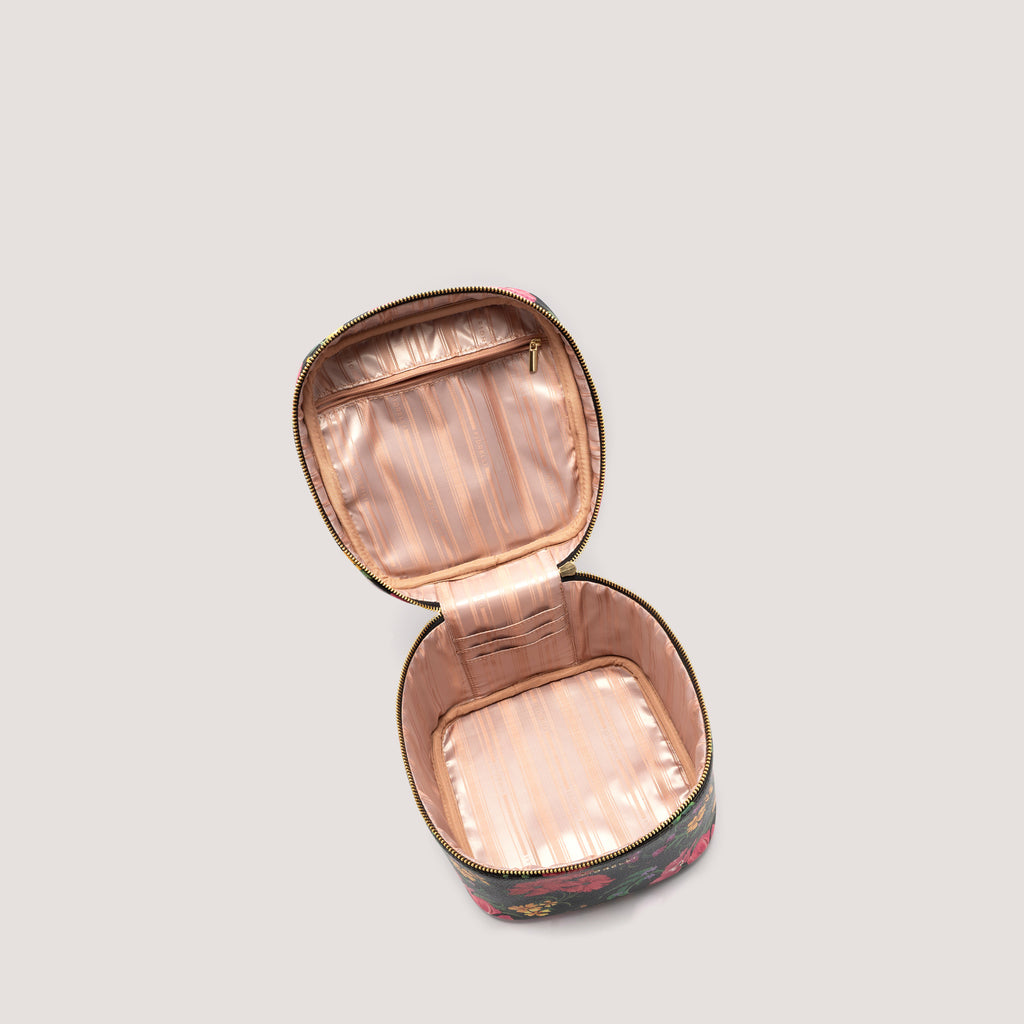 Simple, sleek and endlessly versatile—the SADIE Large Cosmetic Case in romantic floral is crafted from smooth faux leather and finished with Fiorelli branded hardware. Designed to hold your beauty essentials with ease, it features a grab handle and a spacious, fully lined compartment with handy interior pockets. Perfect for everyday elegance, it transitions seamlessly from your morning routine to evening plans, keeping your treasures safe and close at hand.